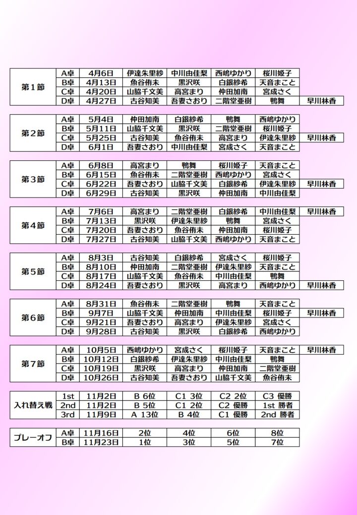 第21期女流桜花対戦表はこちらになります。