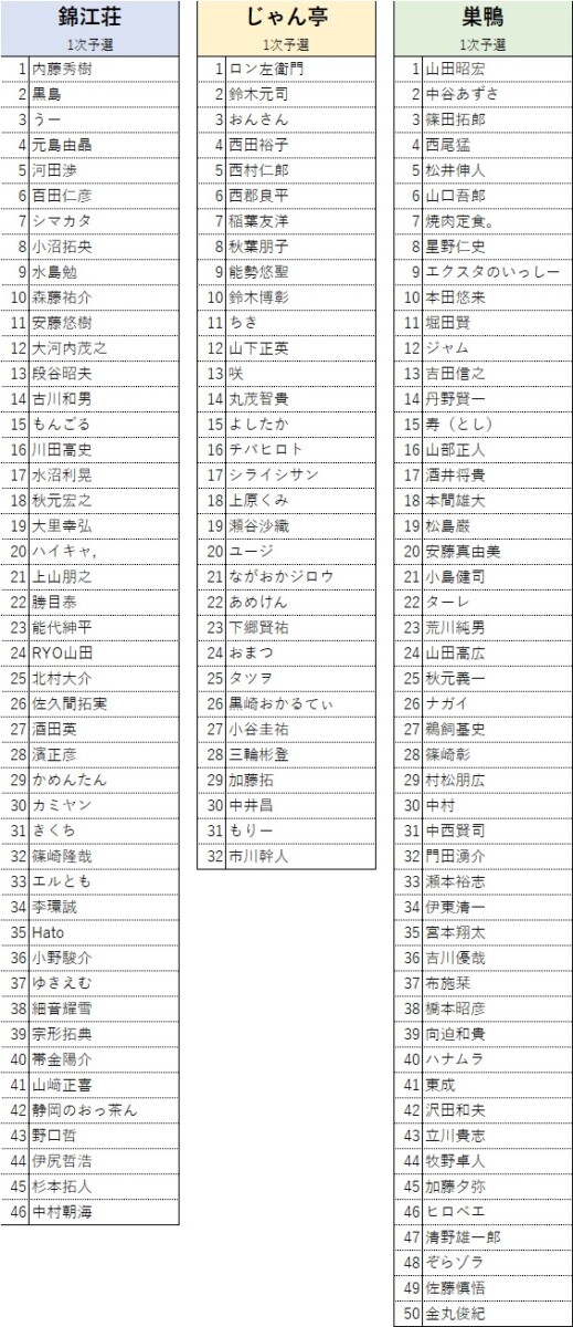 各会場ごとに約半数が2次予選に勝ち上がり